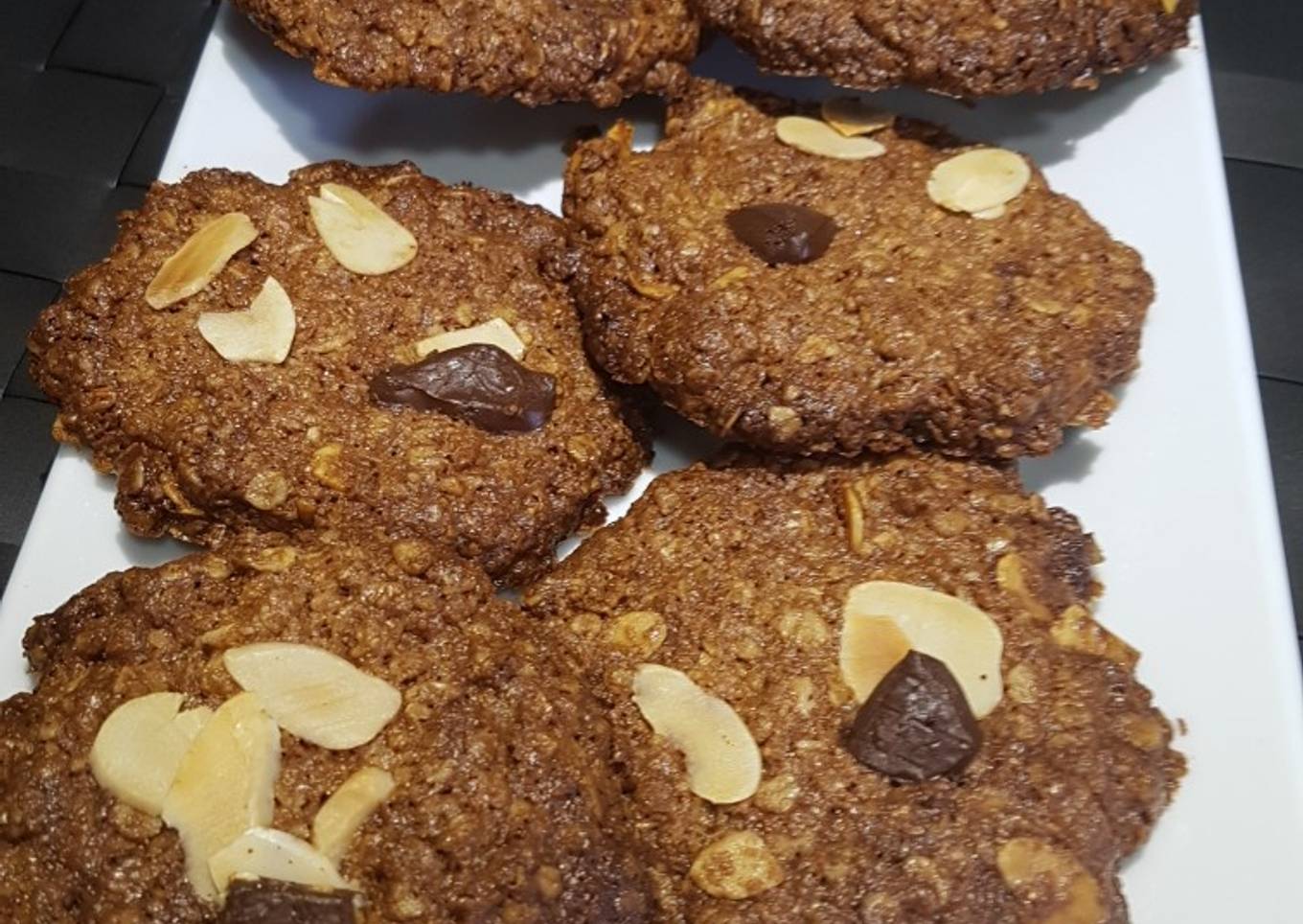 ¡Un domingo es un día perfecto para hacer cookies! En media hora están hechos y así tenemos unos dulces sanos para disfrutar en la sobremesa con un café o en los desayunos de los próximos días. Estos los he hecho esta mañana mezclando almendras y avena con un poco de chocolate puro, minimizando el azúcar y el resultado son unos cookies buenísimos y crujientes que no creo que vayan a ver la luz de mañana 😉. He usado harina de avena pero puede ser cualquier tipo de harina. Las cantidades dan para unos 18 cookies. He utilizado chocolate puro porque nos gusta más, pero si tienes niños pequeños en casa, probablemente tengan mayor éxito con un chocolate más suave. También puedes sustituir el chocolate por arándanos o orejones troceados.