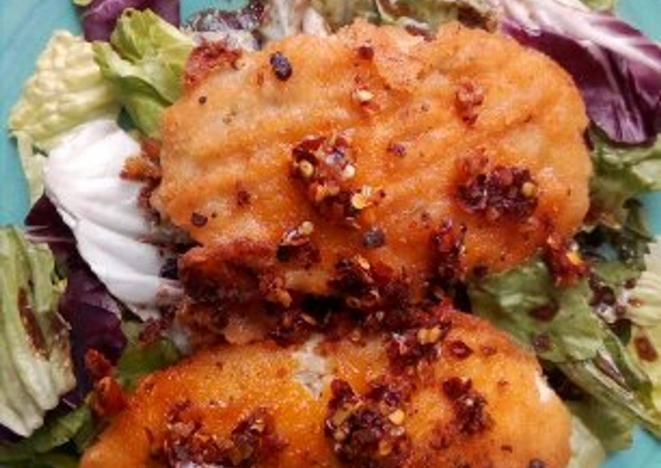 - Freír las pechugas, retirarlas al plato y ponerlas encima de las lechugas.