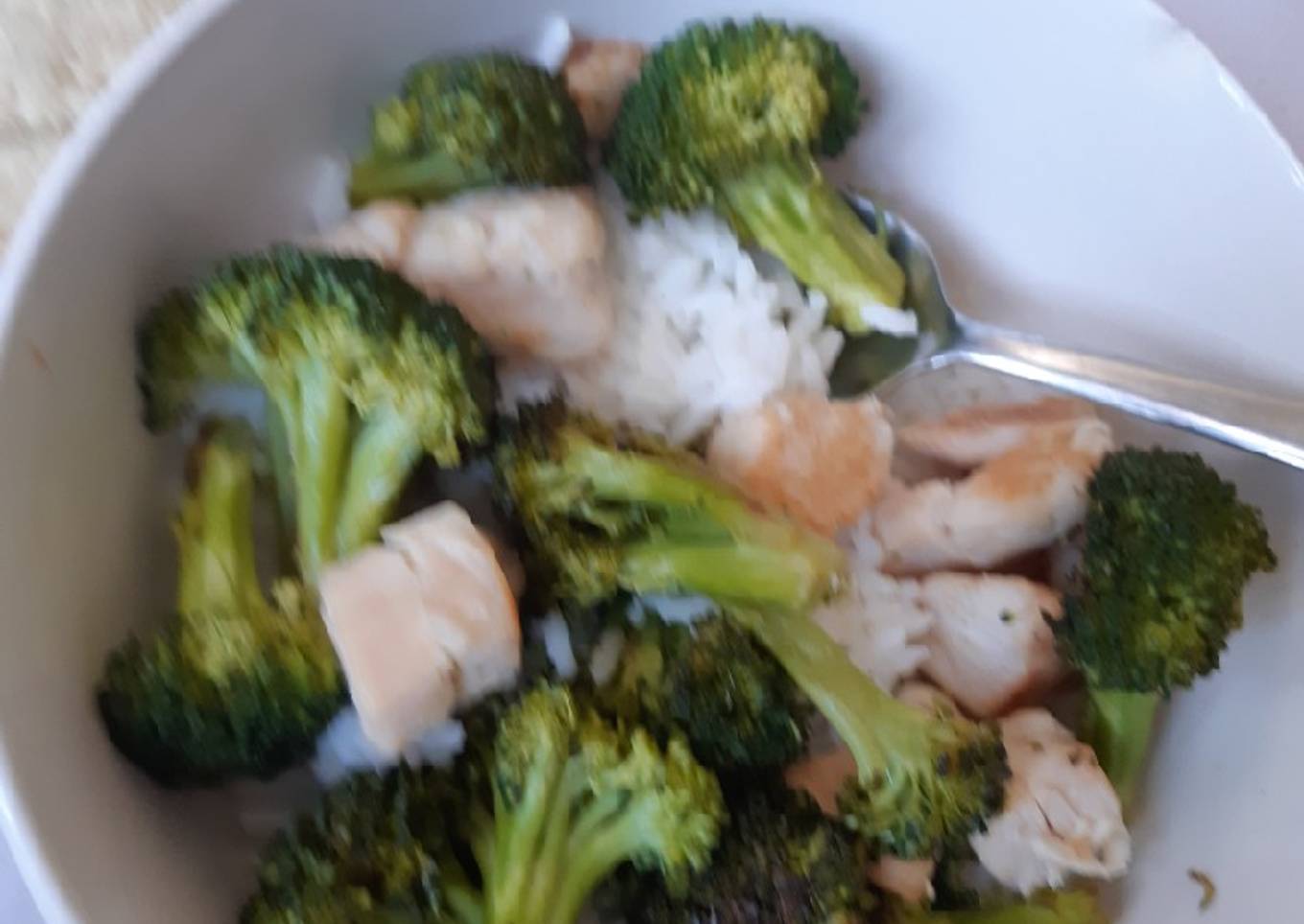 - Servir en un plato hondo el arroz y encima el pollo con brócoli.