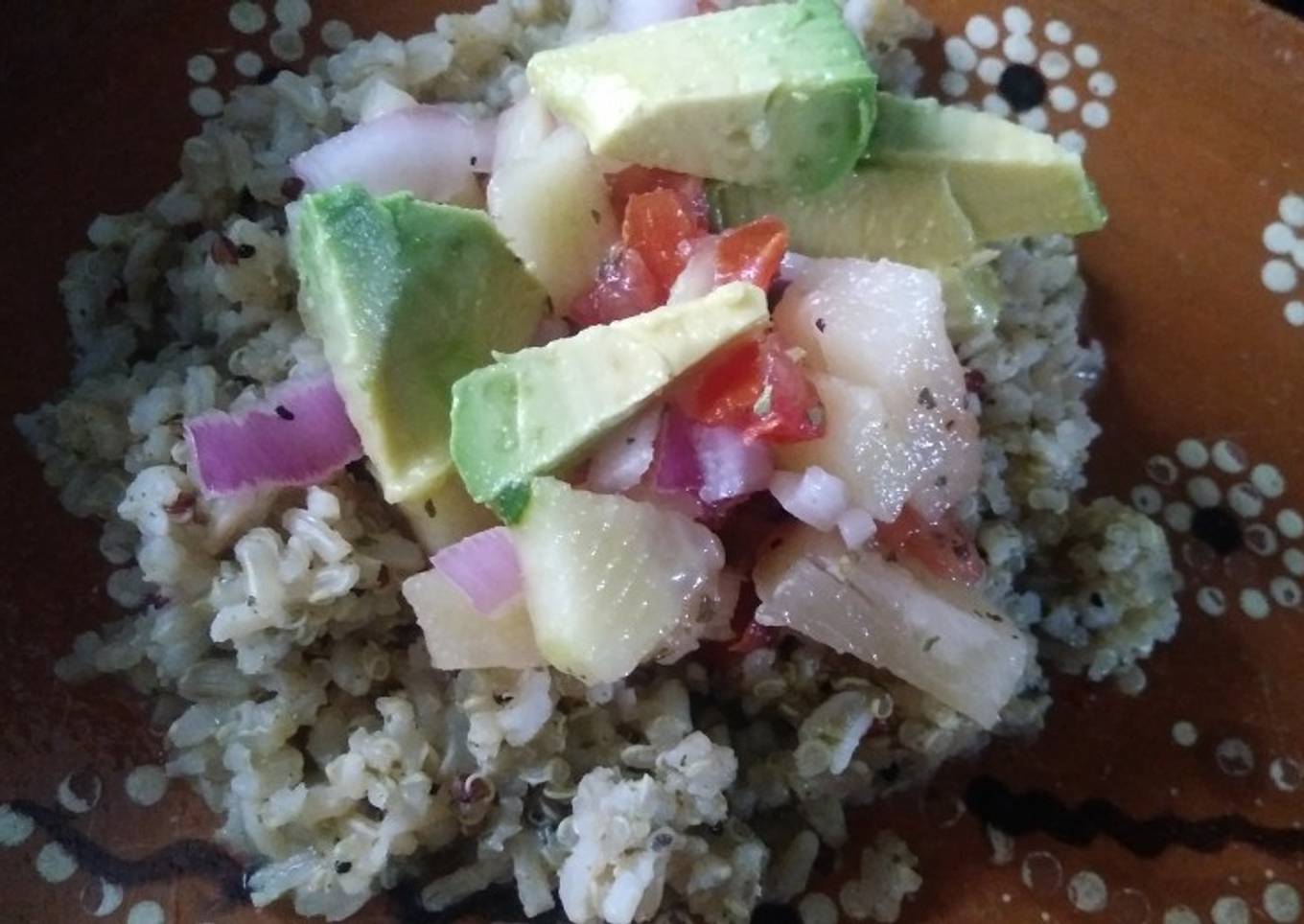 El pico de gallo es muy versátil, hoy lo acompañamos con quinoa. Te invito a ver la receta "Pico de gallo con piña" en el historial de recetas.