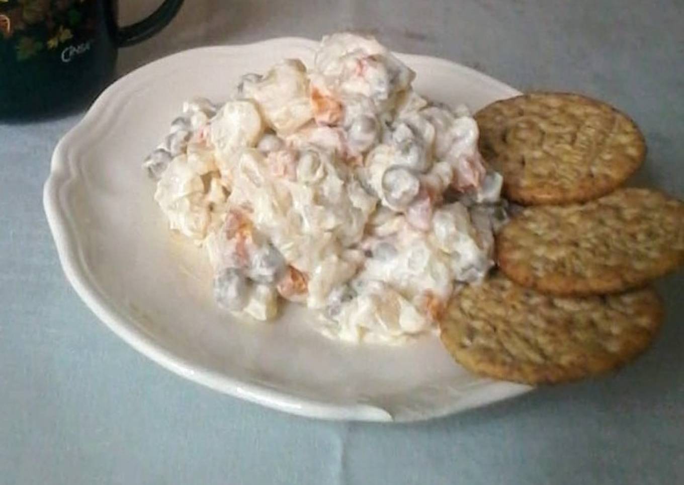 - En un recipiente coloca los vegetales cocidos, la crema y dos cucharadas soperas de mayonesa (pueden ser menos o más todo es al gusto)
