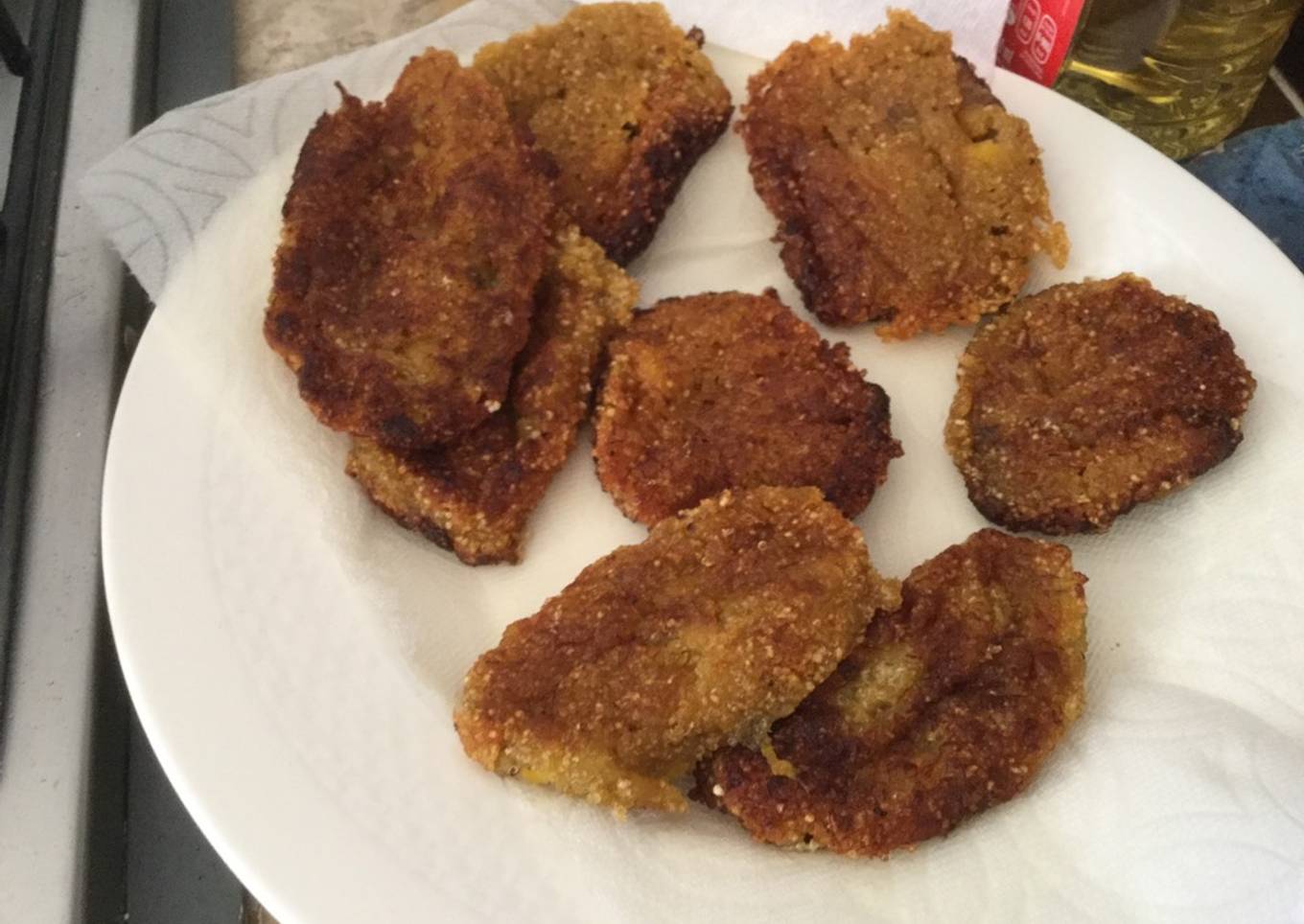 - Se hacen tortitas y se fríen a fuego lento para que el plátano se cueza bien.