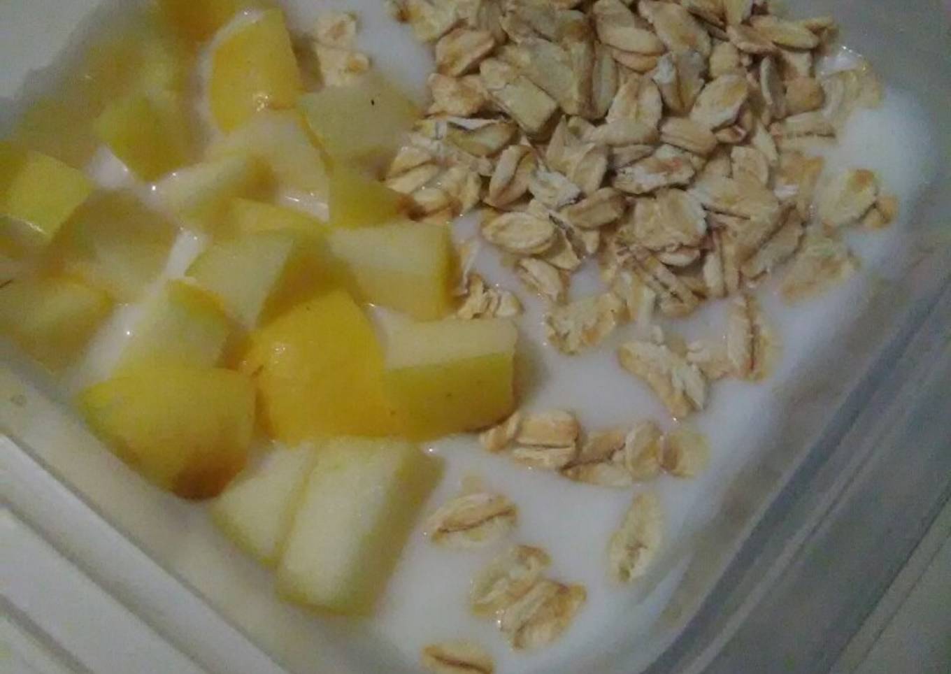 - Ponerle encima la avena y laanzana cortarla en cuadros (pueden agregar miel)